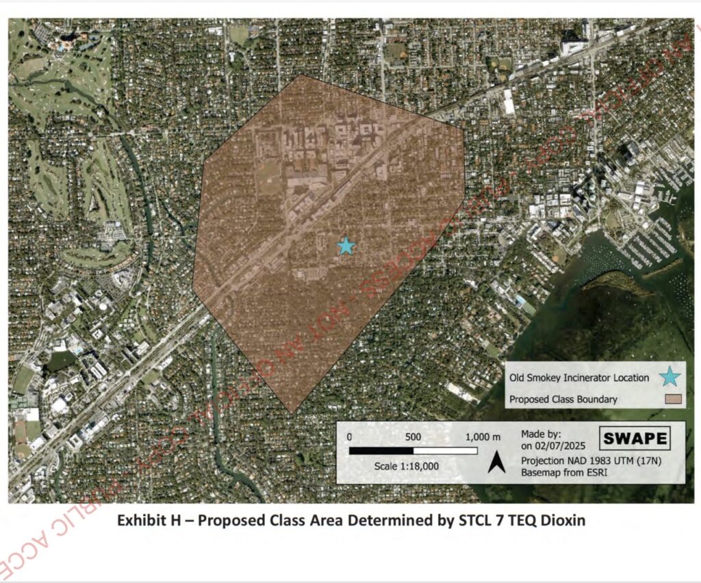The area of concern extends up to a mile from the site of the former incinerator – an area that includes 2,200 properties in the City of Miami and Coral Gables.