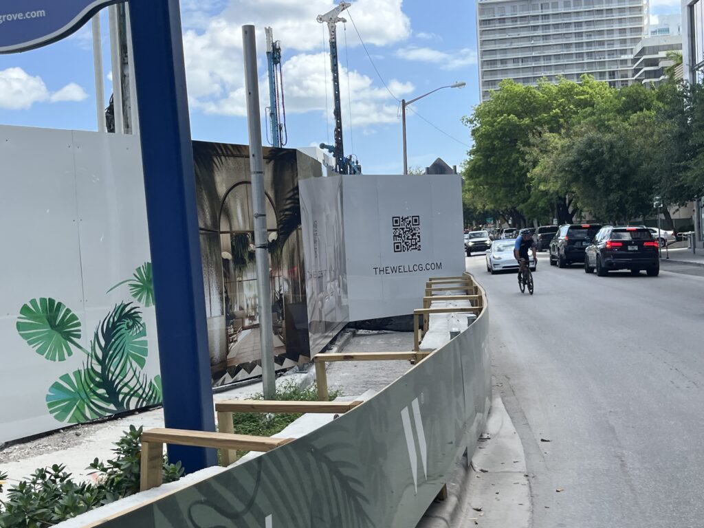 A few blocks north, at Coconut Grove-based Terra Group’s planned eight-story development, The WELL Coconut Grove on Tigertail Avenue, residents have raised questions since mid-2025 about the duration and scope of sidewalk and parking-lane closures.
