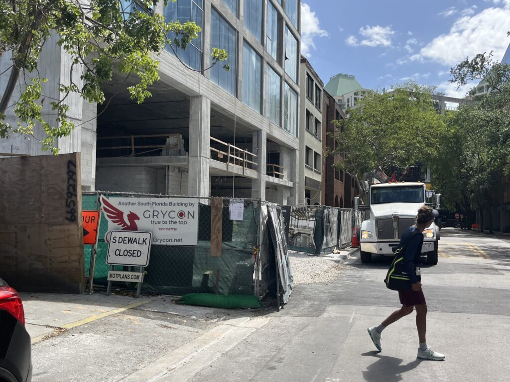 Similar concerns over right-of-way closures have surfaced elsewhere. In December, the Spotlight reported that sidewalks along South Bayshore Drive and Southwest 27th Avenue near the future Four Seasons Private Residences had been closed for nearly two years, forcing pedestrians into traffic. The sidewalks have since been reopened.